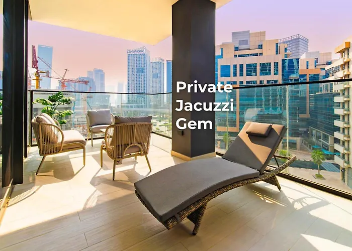 O apartamento Settlerhomes - Elite 2Br With Private Jacuzzi Oasis Dubai está situado a 4.2 km de Santuário de Vida Selvagem Ras Al Khor no bairro Business Bay de Dubai e recebe os hóspedes com banho turco. Este apartamento inclui terraço com vista para a piscina e apresenta piscina.